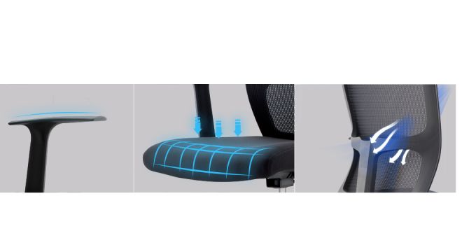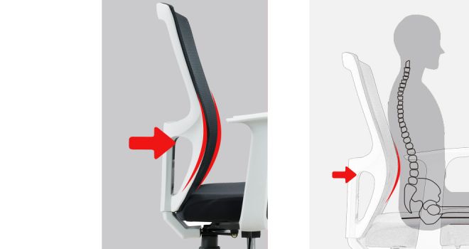 S-образная спинка обеспечивает поддержку поясничного отдела позвоночника, адаптируется к разным высотам и формам, а также обеспечивает поддержку и уход за вашим телом. поясничный отдел позвоночника.