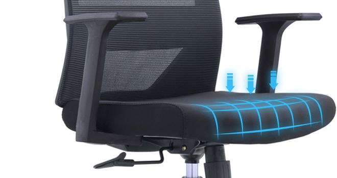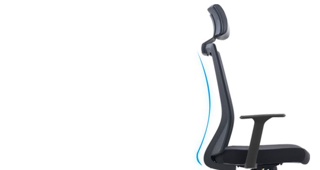 С-образная конструкция спинки соответствует изгибам человеческого тела, обеспечивая сбалансированную поддержку, рассеивание силы и снижение давления на позвоночник.