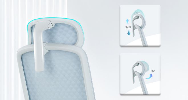 Регулируемый по высоте подголовник, снимает усталость шеи