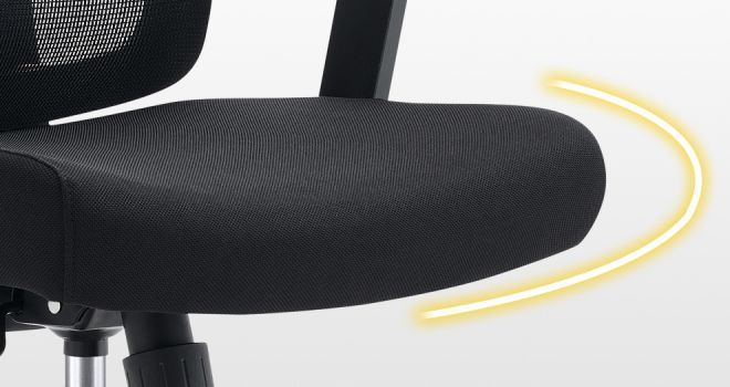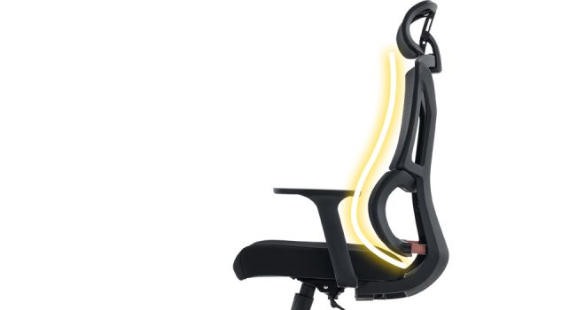 Динамическая поясничная поддержка соответствует талии пользователя, обеспечение комфорта современным офисным работникам во время длительного сидения.