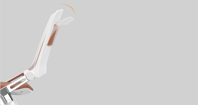 Кресло оснащено эргономичной эластичной спинкой из полипропиленового материала, которая облегает талию и спину и эффективно снимает давление с тела человека.