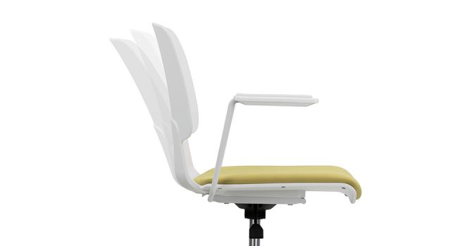 Корпус кресла изготовлен из белого полипропилена и отличается исключительной прочностью. Пользователи могут с комфортом откинуться назад в более естественной, удобной и эргономичной позе. Сиденье изготовлено по технологии цельного литья под давлением, что обеспечивает эффективную поддержку и расслабление поясницы и спины пользователя, а также рассеивание давления на спину.